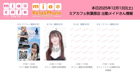 👑本日12月13日(土)のミアカフェ秋葉原店
